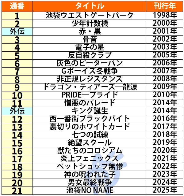 池袋ウエストゲートパークの刊行順一覧