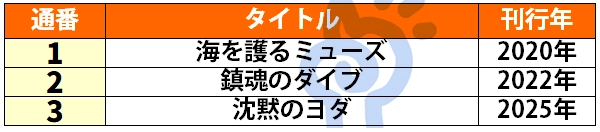 海蝶を読む順番は、海を護るミューズ→鎮魂のダイブ→沈黙のヨダ。